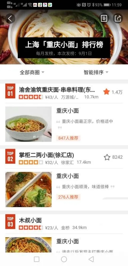 雖然開(kāi)在上海,但“渝筑”的粉絲卻遍布全國(guó)各地。由于連續(xù)多年入選大眾點(diǎn)評(píng)上?!钢貞c小面」菜品榜榜首,渝筑收獲了眾多外地粉絲,“很多北京、山東、江蘇等地的顧客只要一到上海,就會(huì)到我們店里來(lái)吃。”